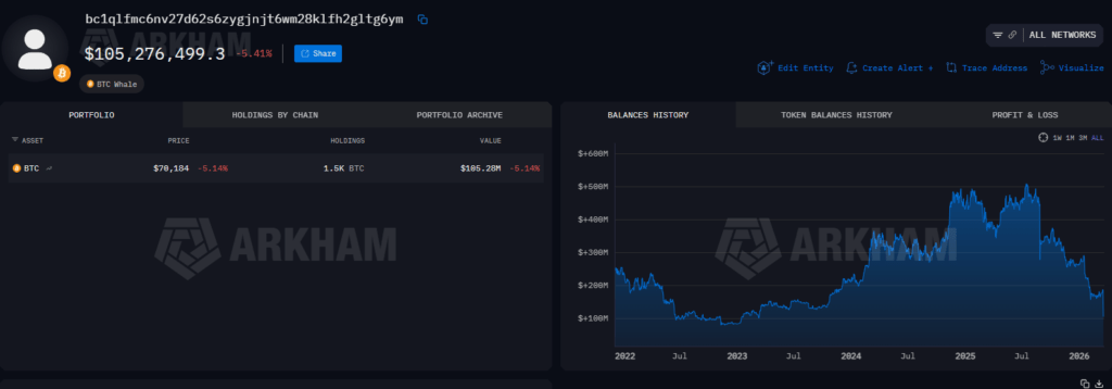 In a separate transaction, early Bitcoin investor Owen Gunden reportedly sold 650 BTC worth $46.3 million. This sale contributes to a broader liquidation trend, with total disposals linked to the same entity exceeding 11,000 BTC, or more than $1 billion, based on blockchain tracking data.