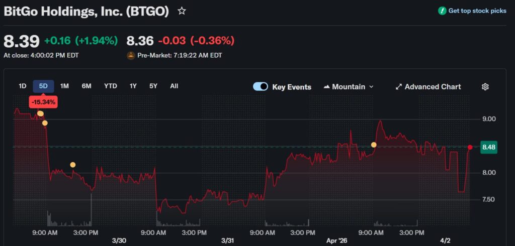 Analysts at Mizuho described BitGo as a “military-grade custodian,” citing its strong security record and focus on institutional services as competitive advantages. Following the announcement period, BitGo shares closed up 1.94% at $8.49 on Thursday, though the stock remains down more than 50% since its January initial public offering.