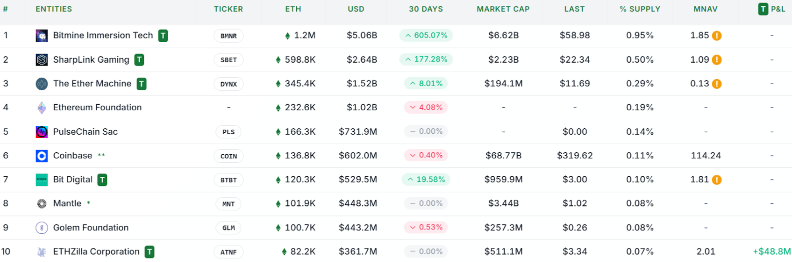 Institutional demand for ETH surges as BitMine and SharpLink expand treasury reserves