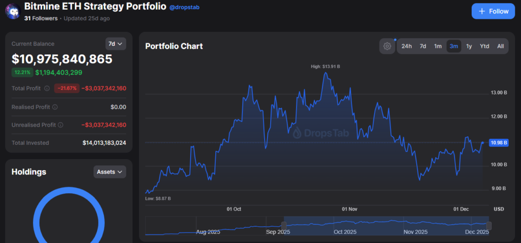 Chairman Thomas Lee said BitMine accelerated accumulation following Ethereum’s Fusaka upgrade on December 3, which implemented improvements to network scalability and security. He also highlighted broader macroeconomic catalysts, including the U.S. Federal Reserve’s expected interest rate cut and the anticipated end of quantitative tightening, as factors supporting a stronger ETH market heading into 2026.