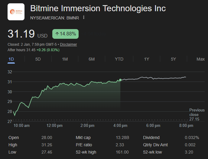 BMNR climbed 14% in a single trading session,