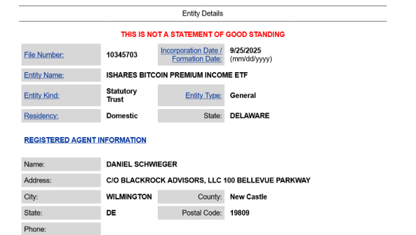 BlackRock has filed to establish a Delaware trust company to support its proposed iShares Bitcoin Premium Income ETF, signaling its intent to expand beyond its record-breaking spot Bitcoin ETF, IBIT. The new product is designed as a yield-generating alternative for investors seeking steady income from Bitcoin exposure.
