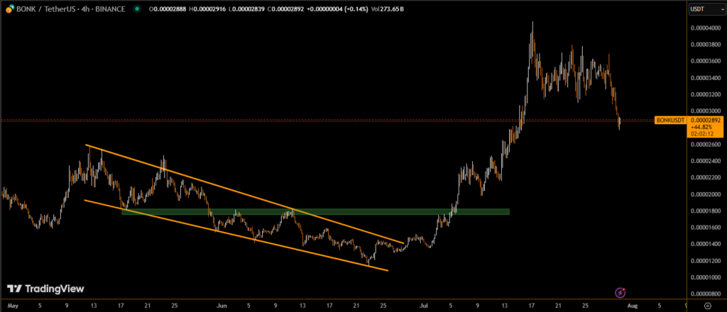 BONK’s recent drop reflects a flight to safety across digital assets, with investors trimming exposure to highly speculative coins amid rising global uncertainty.