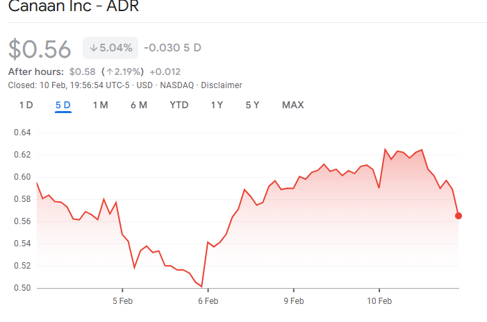 Year to date, Canaan shares are down 18.1% and have declined more than 70% over the past 12 months, reflecting ongoing pressure in the crypto mining sector.