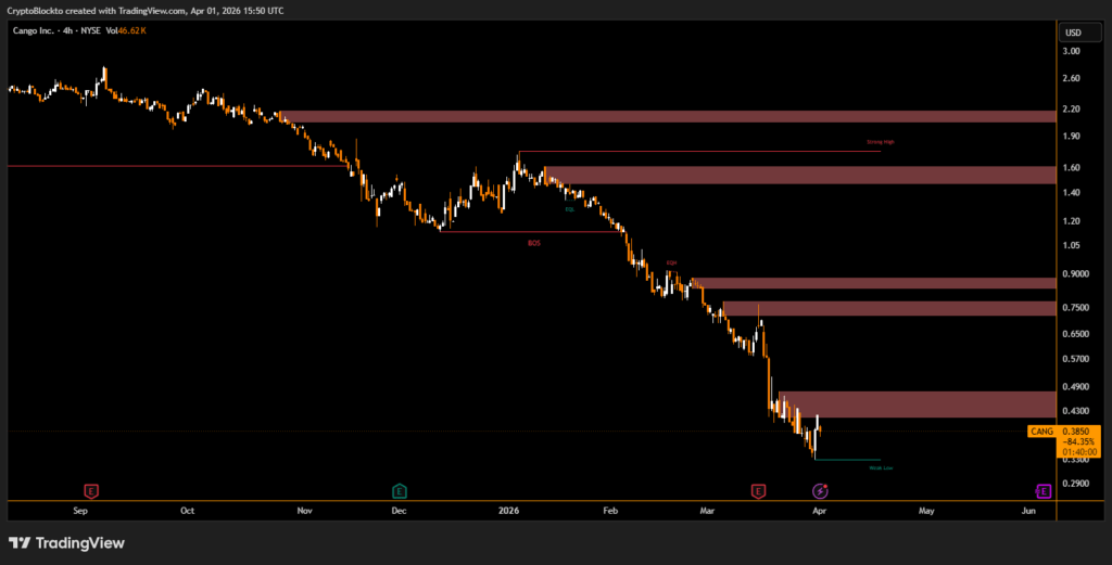 As of mid-session trading, Cango shares were priced at approximately $0.40, reflecting continued pressure on the company’s market valuation.