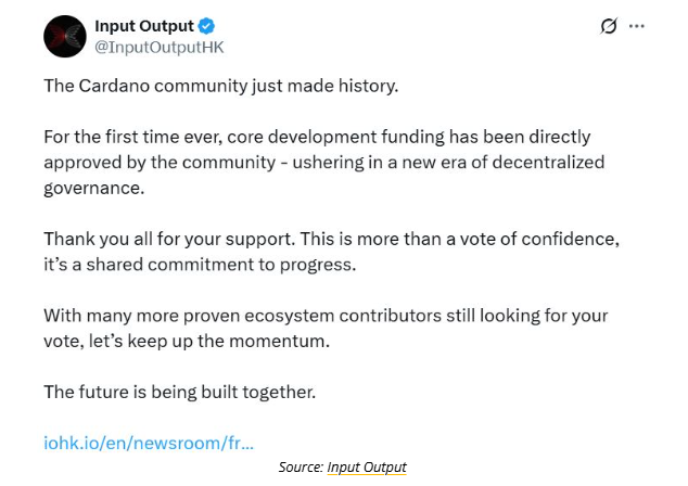 This marks the first time Cardano’s community has directly authorized core development funding, a shift that could influence future governance decisions.