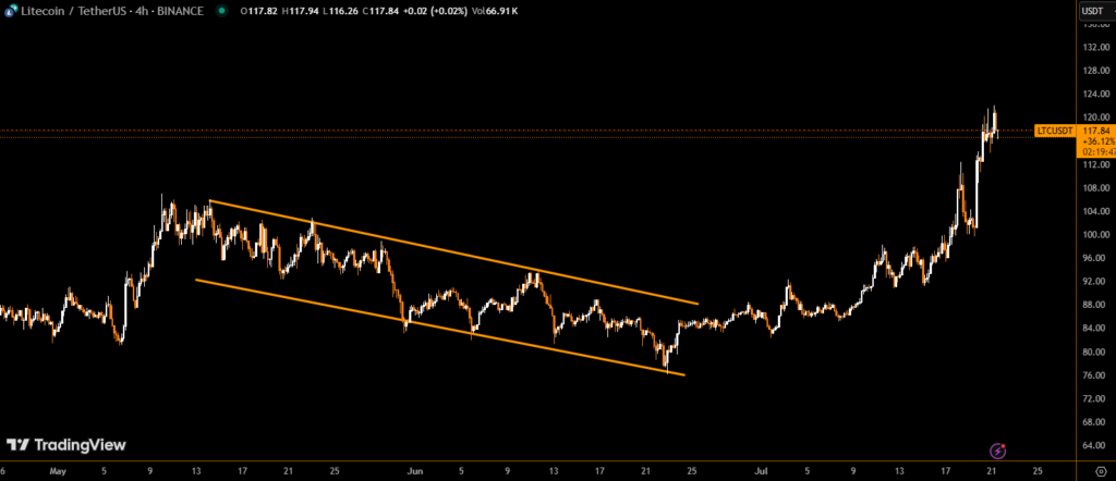 Litecoin joined LINK in this weekend’s rally, showing strong technical recovery and a clean breakout from recent resistance levels. While the exact catalyst for LTC’s move remains speculative, analysts point to its increasing use in payment networks and merchant adoption as a key driver.