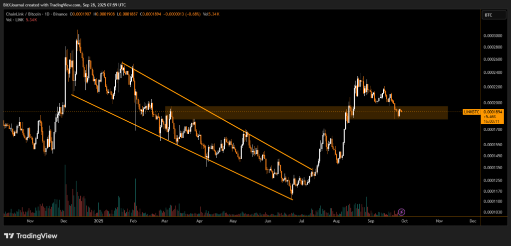 Beyond USD performance, LINK/BTC is showing relative strength, signaling growing demand for the token compared to Bitcoin. This rotation may attract capital inflows from traders seeking altcoin exposure as BTC consolidates.