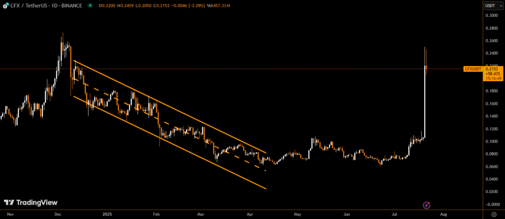 This rally makes CFX one of the top-performing tokens in the crypto market this week.