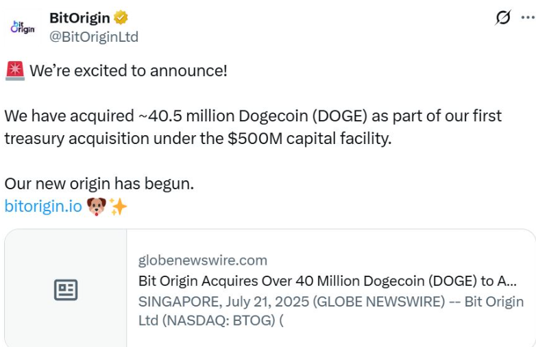Bit Origin Begins DOGE Accumulation With 40.5 Million Tokens