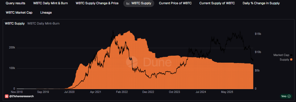 The combined supply of WBTC and cbBTC currently stands at approximately 208,000 Bitcoin, highlighting the scale of the growing wrapped Bitcoin market.