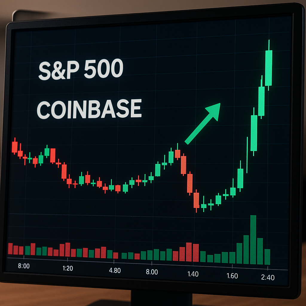 In a major milestone for the crypto industry, Coinbase Global Inc. (COIN) is reportedly set to be included in the S&P 500 index, marking a significant step forward in mainstream acceptance of cryptocurrency-related stocks. The news sent Coinbase shares soaring by over 25%, with analysts forecasting that the move could generate $8–$9 billion in passive inflows from index-tracking funds