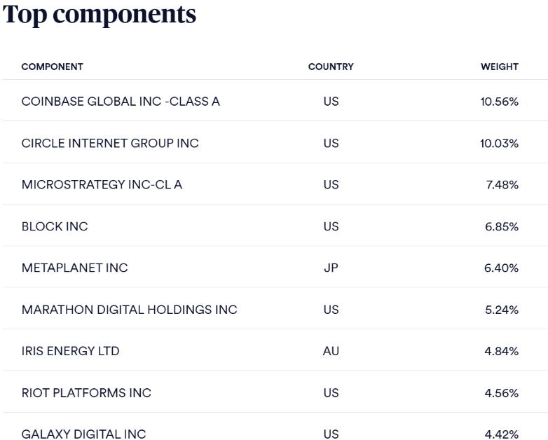 Circle briefly became the top holding in VanEck’s MVIS Global Digital Assets Equity Index (MVDAPP), further boosting exposure for Coinbase through ETF allocations.