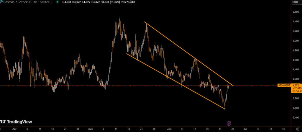 If ATOM holds the $4.00 support and reclaims $4.09 resistance, the next target could be $4.20 to $4.35 in the short term