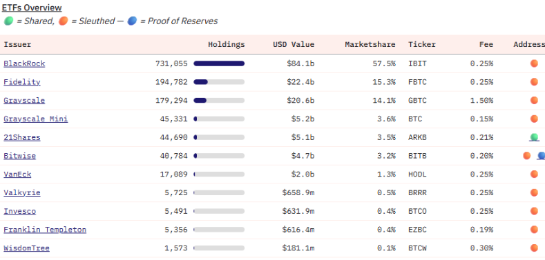 BlackRock’s iShares Bitcoin Trust, with over $84 billion in assets, commands 57.5% of U.S. spot Bitcoin ETF market share, while Fidelity’s fund holds $22.4 billion, or 15.3%, according to Dune data.