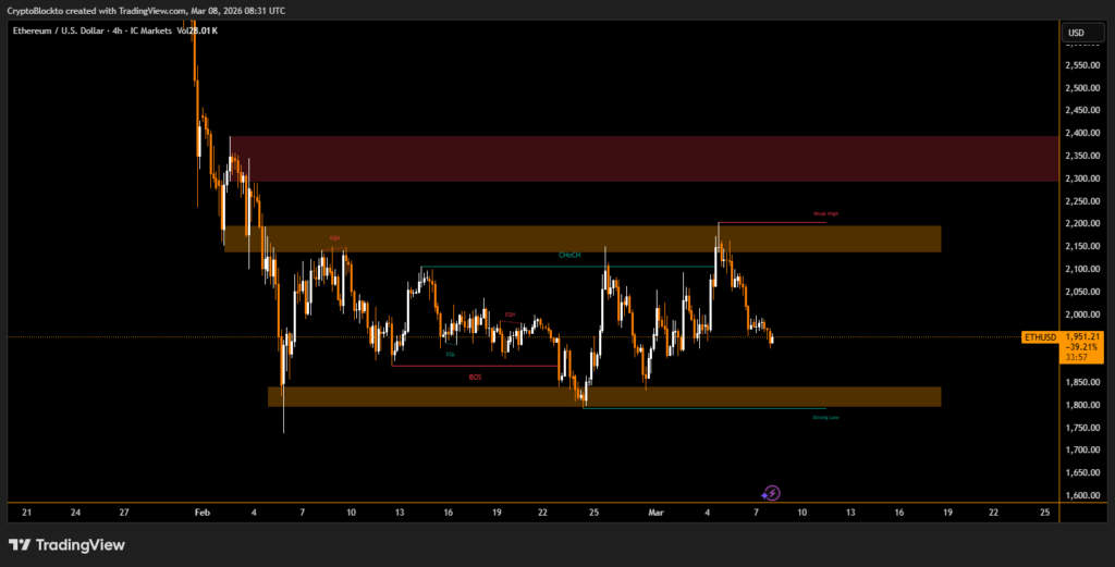 Ethereum also saw similar volatility, trading near $2,000 and reaching around $2,085 before slipping slightly as the broader market cooled.