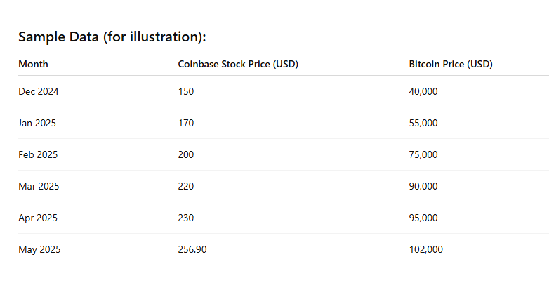 Coinbase Stock Price and Bitcoin Price Growth (Last 6 Months)