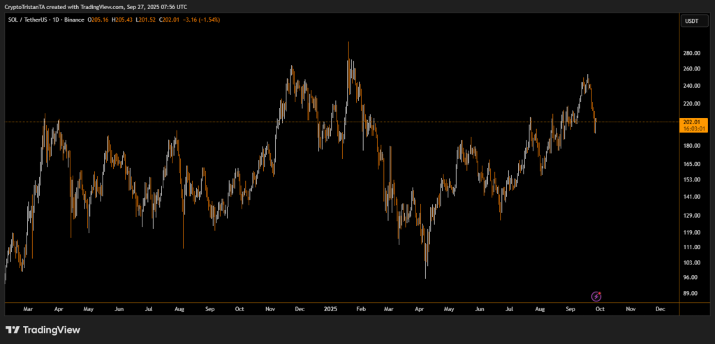 SOL is only down about 33% from its all-time high of about $295, which it reached in January amid the memecoin frenzy.