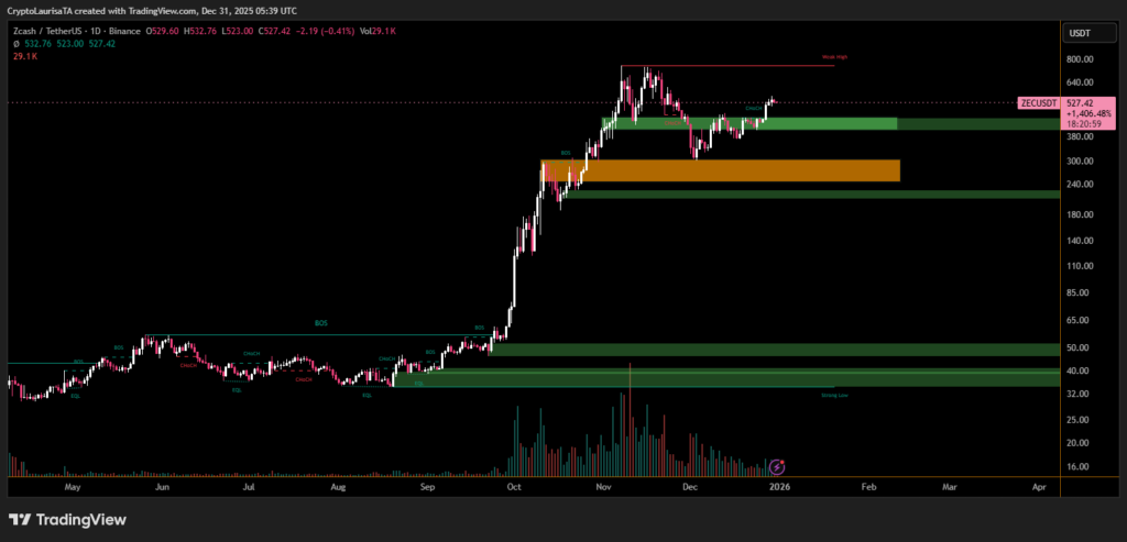 With nearly 2% of Zcash’s supply now on its balance sheet, Cypherpunk continues to execute an aggressive accumulation strategy. The move signals sustained institutional conviction that financial privacy may regain strategic importance, even as short-term price action remains volatile.