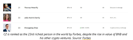 At the current BNB price levels, his holdings surpass several well-known billionaires, including family stakes in some of America’s largest private firms. His crypto-dominated portfolio also includes a small fraction in Bitcoin, with 98% reportedly held in BNB.