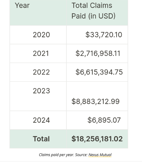 This case illustrates how on-chain insurance can offer a faster, more transparent alternative to traditional models. Most valid claims under Nexus Mutual’s system are paid within seven days, far exceeding the typical months-long process of off-chain insurers.
