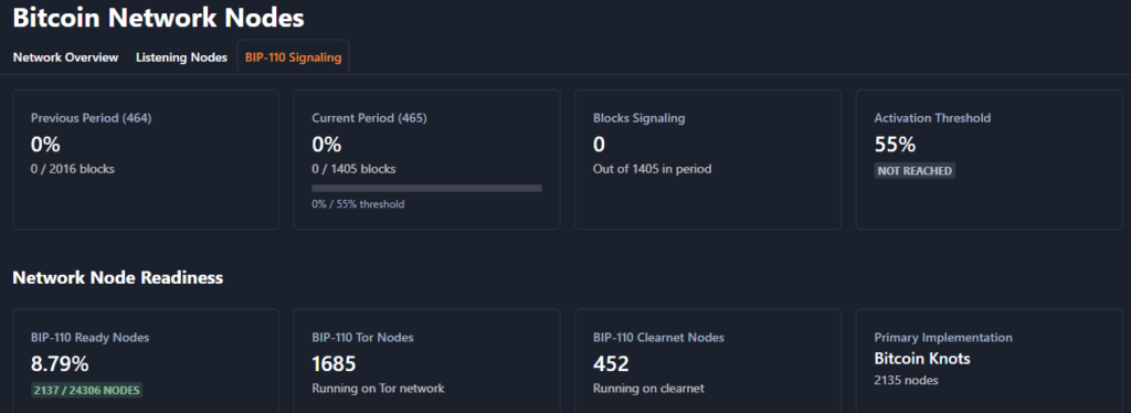 Approximately 9% of publicly reachable nodes currently signal readiness for BIP-110, according to network monitoring data. Habovštiak has stated the experiment was a one-time effort intended to address what he described as technical misconceptions rather than encourage further blockchain data embedding.