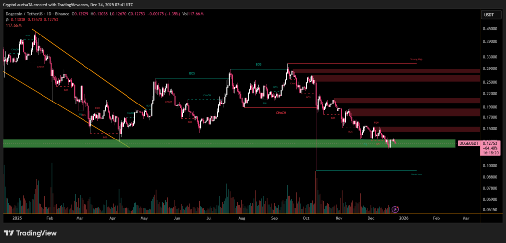 Technical analysis indicates that Dogecoin has been in a downtrend since mid-2025, with repeated breaks of key support levels signaling ongoing bearish pressure. Trading volumes on the spot market have also increased, reinforcing the narrative that investors are adjusting positions in anticipation of volatility.