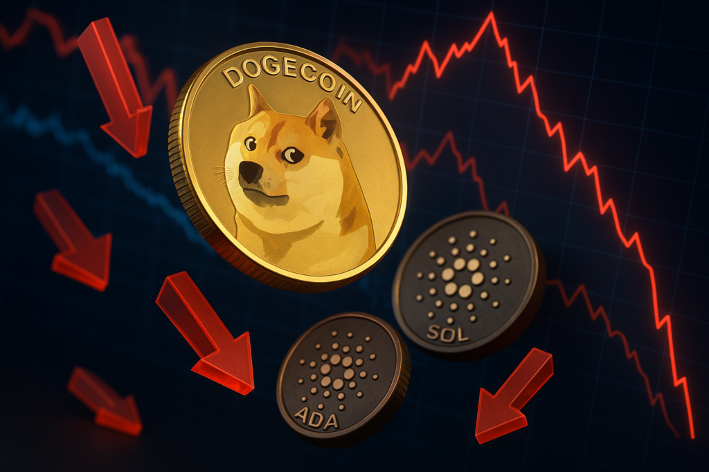 The cryptocurrency market faced sharp declines as renewed U.S. trade tensions rattled investor sentiment. Leading altcoins Dogecoin (DOGE), Cardano’s ADA, and Solana’s SOL experienced substantial losses after a U.S. appeals court temporarily reinstated tariffs previously struck down by a lower court.