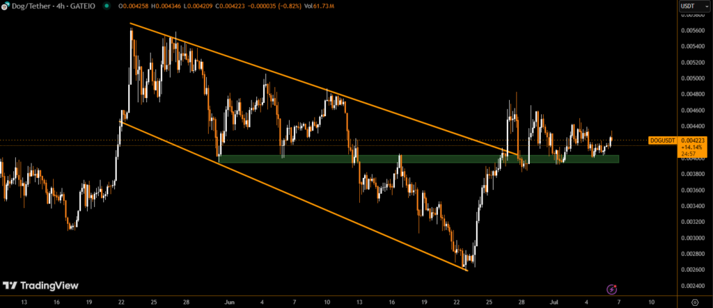 Dogecoin’s ability to hold the $0.15 trendline support will likely determine its short- to mid-term trajectory. If buyers step in at this zone, a rebound to $0.22 remains on the table. Without volume, however, price may continue to consolidate.