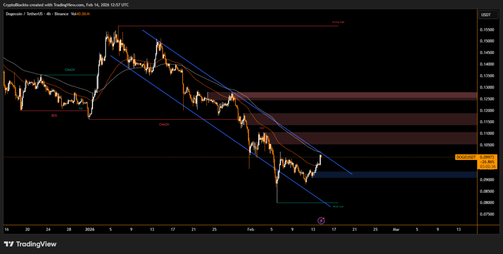 A successful breakout above $0.12 would invalidate the immediate bearish outlook and could open the path for a broader recovery toward $0.16, marking a potential trend reversal zone.