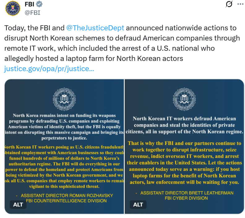 The DOJ described the scheme as a “unique threat” to companies hiring remote IT workers, as attackers can bypass traditional background checks.