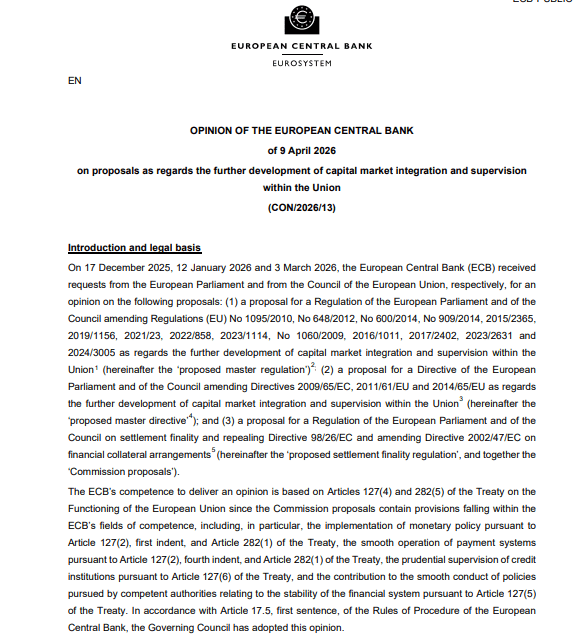 The European Central Bank (ECB) has formally supported a proposal by the European Commission to centralize oversight of major crypto firms under the European Securities and Markets Authority (ESMA), headquartered in Paris. The recommendation was outlined in an official opinion published on April 9, describing the initiative as a major step toward deeper integration of financial markets across the European Union.