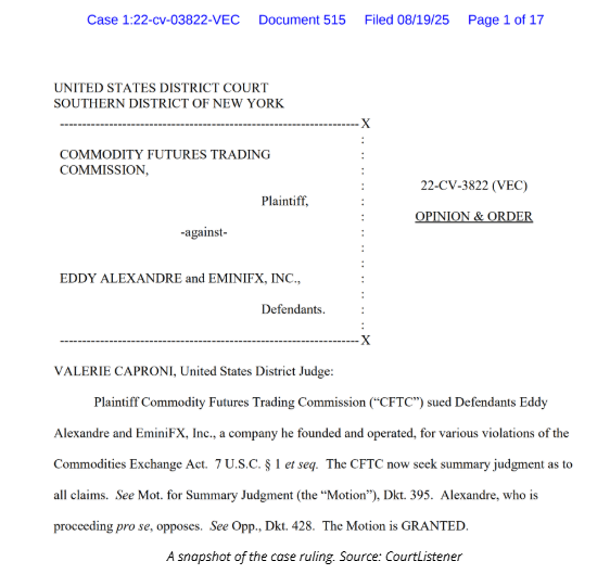 “Defendants Alexandre and EminiFX misled investors with false promises of consistent high returns while concealing ongoing losses,” the court order noted.