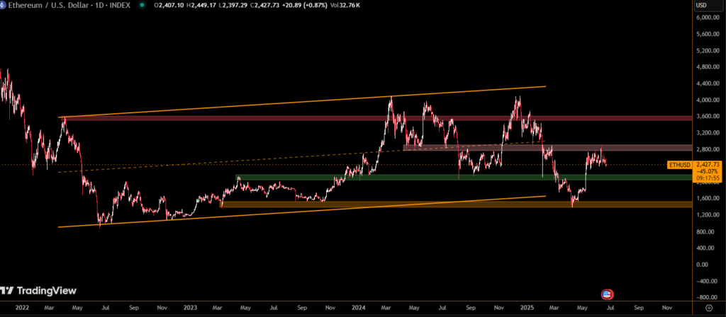 The bounce formed a key support zone between $2,420 and $2,430, confirmed by multiple low-volume retests, signaling early signs of accumulation.
