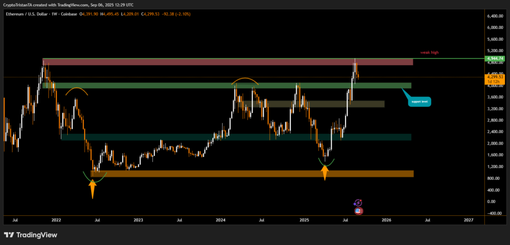Ethereum has risen 16.35% over the past 30 days, but dipped 2.92% in the past week, trading around $4,301. According to the Crypto Fear & Greed Index, sentiment has stayed in the “neutral” range, reflecting investor caution despite ETH’s overall upward trajectory.
