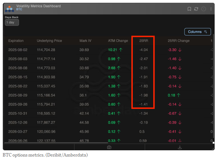 While Ether shows a rising bearish skew, Bitcoin’s short-term options market remains relatively stable. BTC puts are only trading at a 1% to 2.5% premium over calls, suggesting that investors still maintain relatively stronger confidence in Bitcoin’s price stability.
