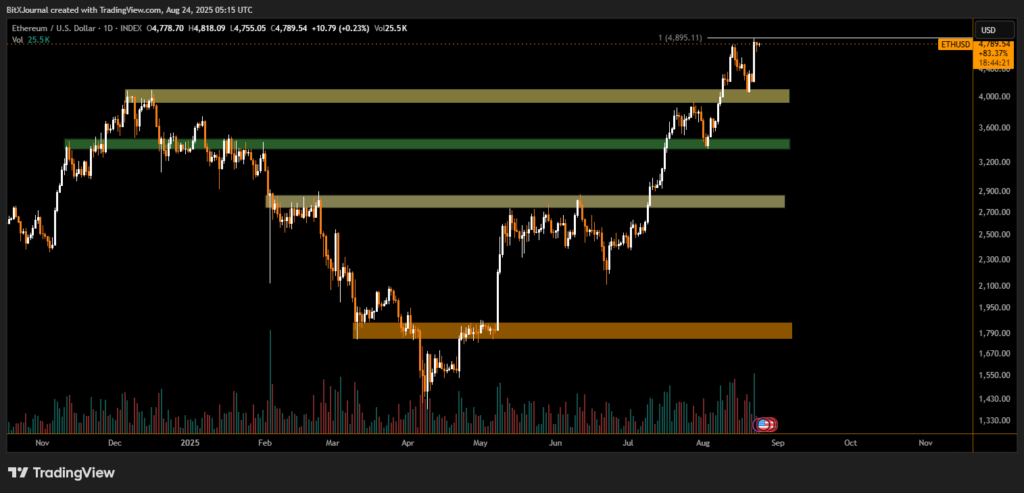 Ether (ETH) continues to trade near all-time highs, drawing significant attention from both retail and institutional investors. The surge in interest follows bullish forecasts from market analysts, including Tom Lee, who projects ETH could reach $15,000 by the end of 2025.