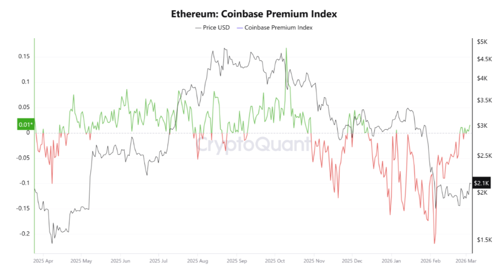 On-chain indicators are also pointing to a recovery in demand. The Coinbase Premium Index, which measures the price difference between Ether on Coinbase and other exchanges, recently turned positive after an extended period in negative territory. A positive reading generally signals stronger buying activity from U.S. investors.