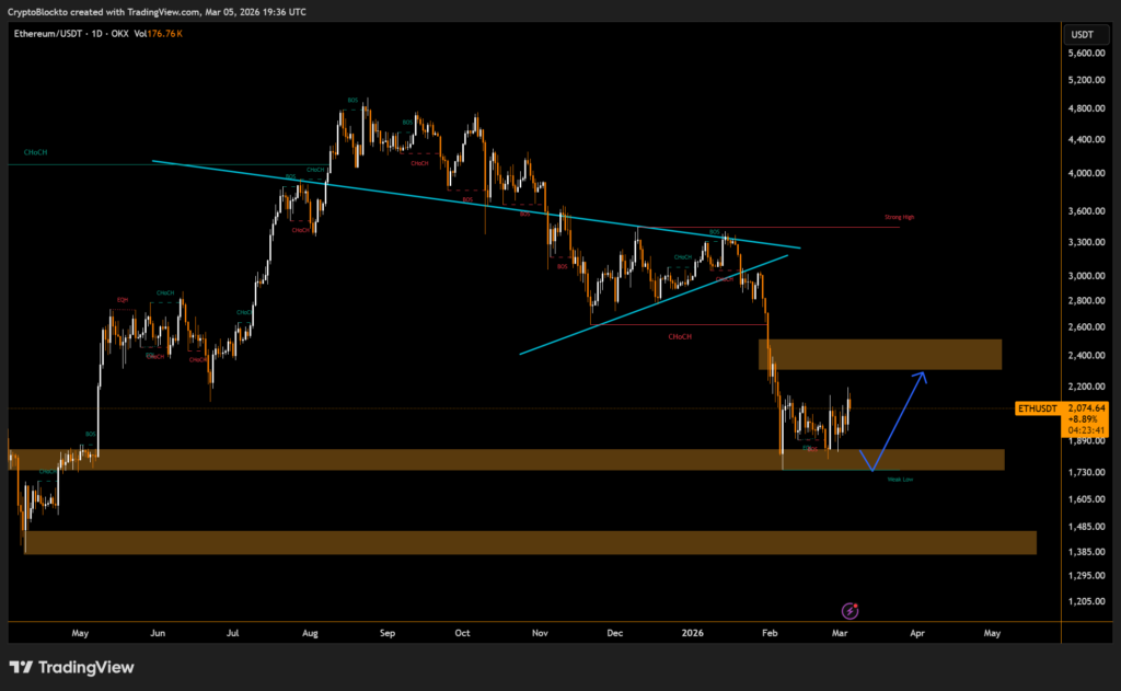 Technical analysts suggest that if Ether successfully retests and holds the $2,100 support zone, it could pave the way for a stronger rebound. In a more optimistic scenario, continued demand and improving market sentiment could push prices toward the $3,400 region in the longer term.