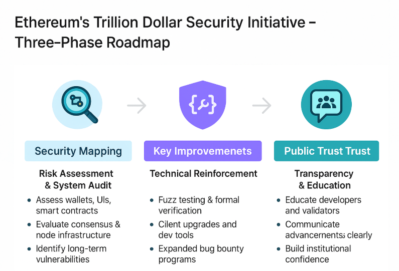 - Public Trust & Transparency: Ethereum’s security advancements will be actively communicated to the community and public stakeholders to build confidence. The goal is not just technical improvement, but also clear messaging around Ethereum’s readiness for global-scale adoption.