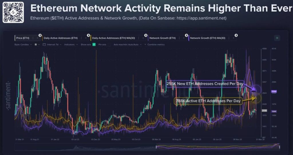 The Ethereum network has reached a major milestone, recording over 788,000 daily active addresses. Approximately 255,000 new addresses are added each day, signaling strong growth in user adoption and engagement.