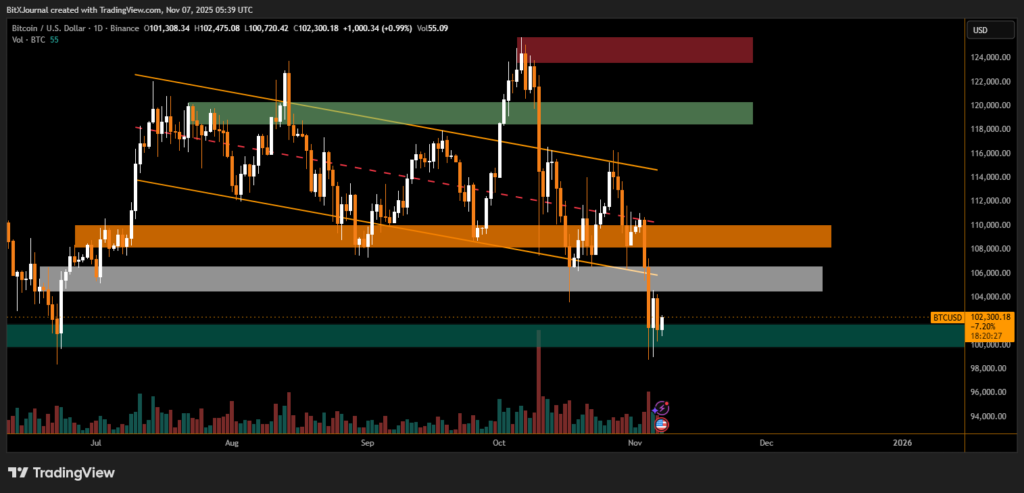 Bitcoin briefly fell below $106,000 earlier this week before recovering to $102,298 at the time of publication, according to BITXjournal.