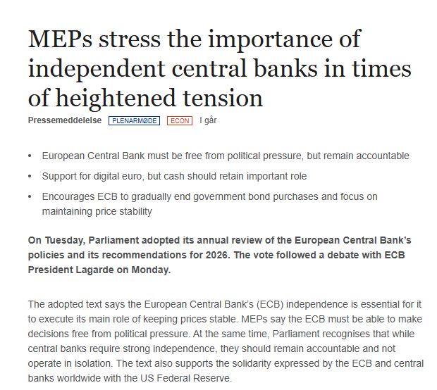 MEPs stressed that the ECB must maintain independence from political influence to safeguard price stability and market confidence. Johan Van Overtveldt, former Belgian finance minister, noted that central bank autonomy is critical, warning that political interference historically leads to inflation, financial instability, and political turmoil.
