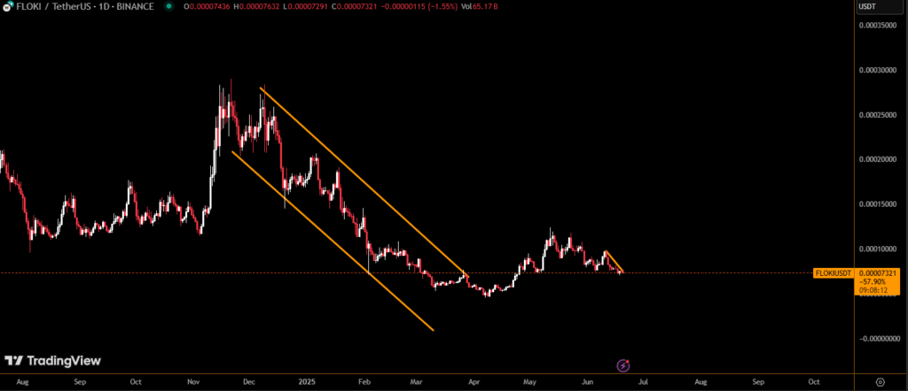 Floki Inu (FLOKI) is testing a critical support level around $0.00007000, prompting speculation that the dog-themed meme coin may be nearing a bottom. Despite recent declines, a mix of technical signals, upcoming ecosystem updates, and growing utility may position FLOKI for a potential rebound.