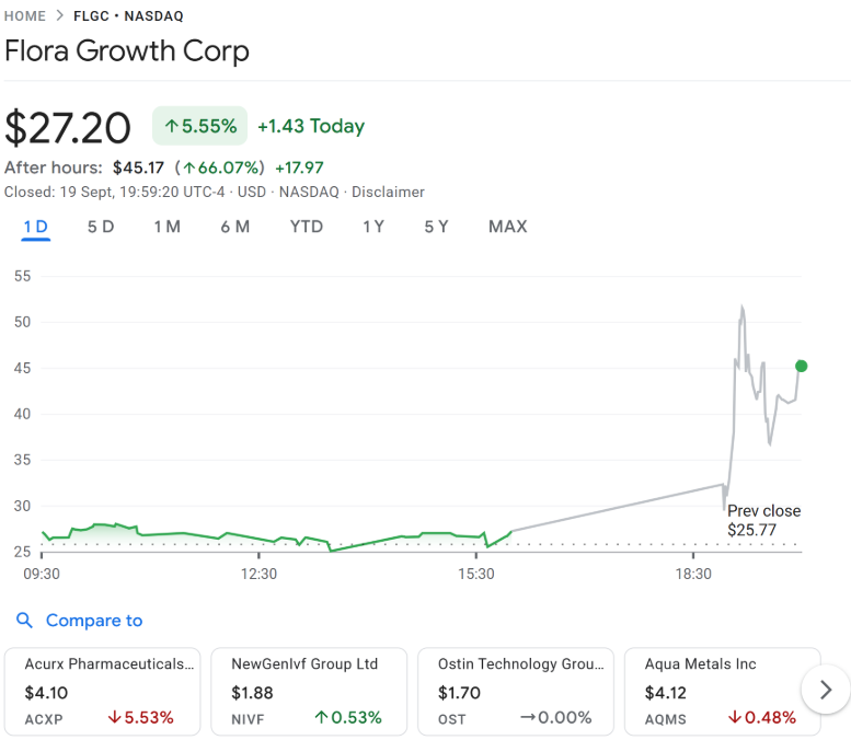 Following the announcement, Flora Growth shares rose 5%, reflecting investor enthusiasm for the pivot. The transaction is expected to close by September 26, pending shareholder approval. Certain investors will also receive pre-funded warrants linked to 0G token usage.