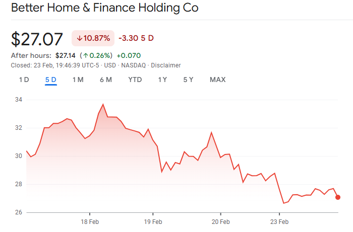 Shares of Better, listed on Nasdaq under the ticker BETR, have declined significantly from their late-October highs, reflecting broader market volatility as the company explores its crypto-enabled growth strategy.