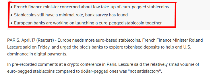 The new position contrasts with earlier views expressed by former French Finance Minister Bruno Le Maire, who previously argued that privately issued stablecoins posed risks to monetary sovereignty and should be restricted within Europe.