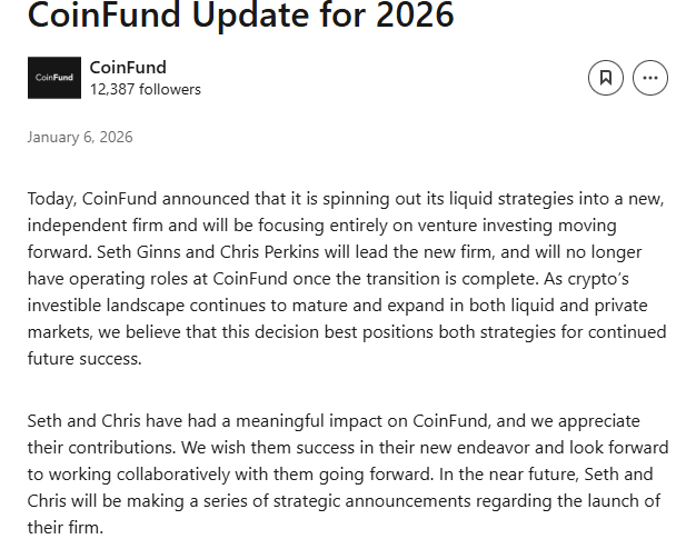 The move follows CoinFund’s earlier decision to spin out its liquid strategies business into 250 Digital, allowing the firm to focus more closely on venture investments. The transaction includes the 250 Digital investment team along with all liquid cryptocurrency strategies previously operated by CoinFund. Franklin Templeton also plans to allocate capital into these strategies as part of the agreement.