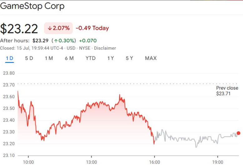 Despite the announcement, GameStop stock (GME) ended the day down 2.5% at $23.22, with a mild after-hours rise to $23.29. The market appears cautious, perhaps waiting for more concrete action or adoption metrics tied to crypto initiatives.