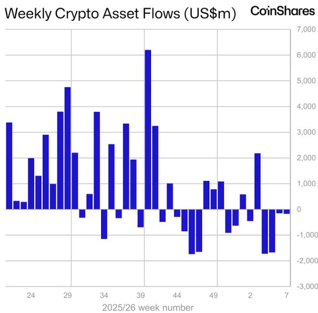 Global crypto exchange-traded products (ETPs) recorded a fourth consecutive week of net outflows with $173 million exiting funds last week, according to data from CoinShares. Over the past month total withdrawals have reached $3.74 billion, reflecting sustained caution among investors.